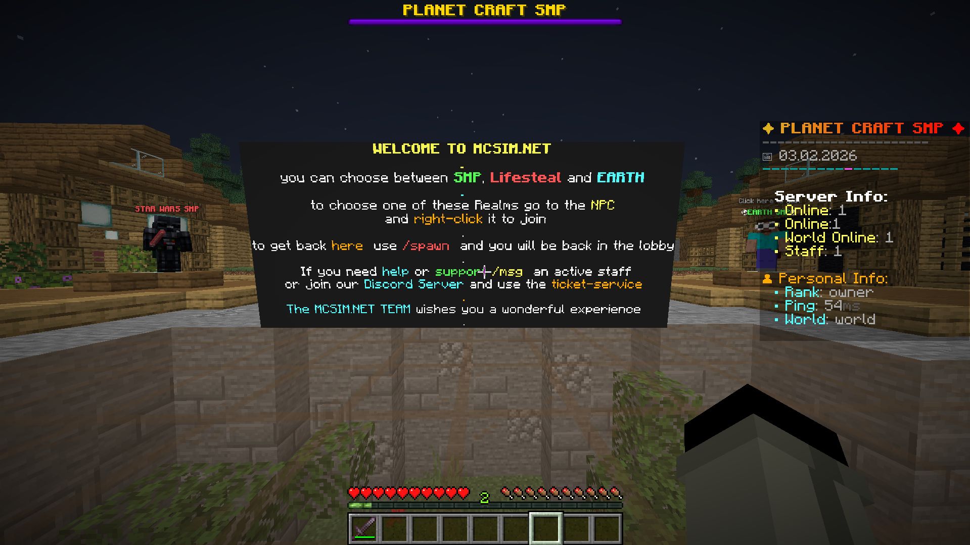 MCSIM.NET is a high‑quality Minecraft network featuring Earth, SMP, and Lifesteal — each with its own progression and economy. No pay‑to‑win, active moderation, strong performance, and a friendly EU community.